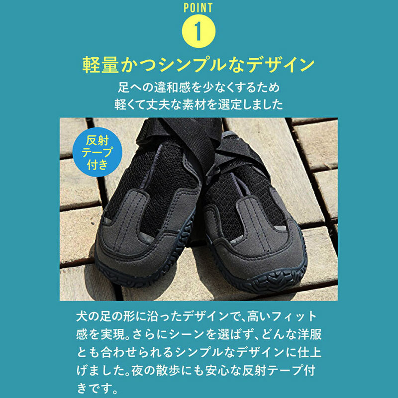 軽量で履かせやすく、脱げにくい設計が特徴で、「ペットアドバンス」オンラインショップ限定発売です。