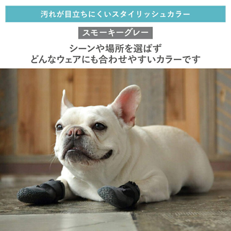スモーキーグレーのシンプルなデザインで、愛犬の足元をオシャレに演出します。