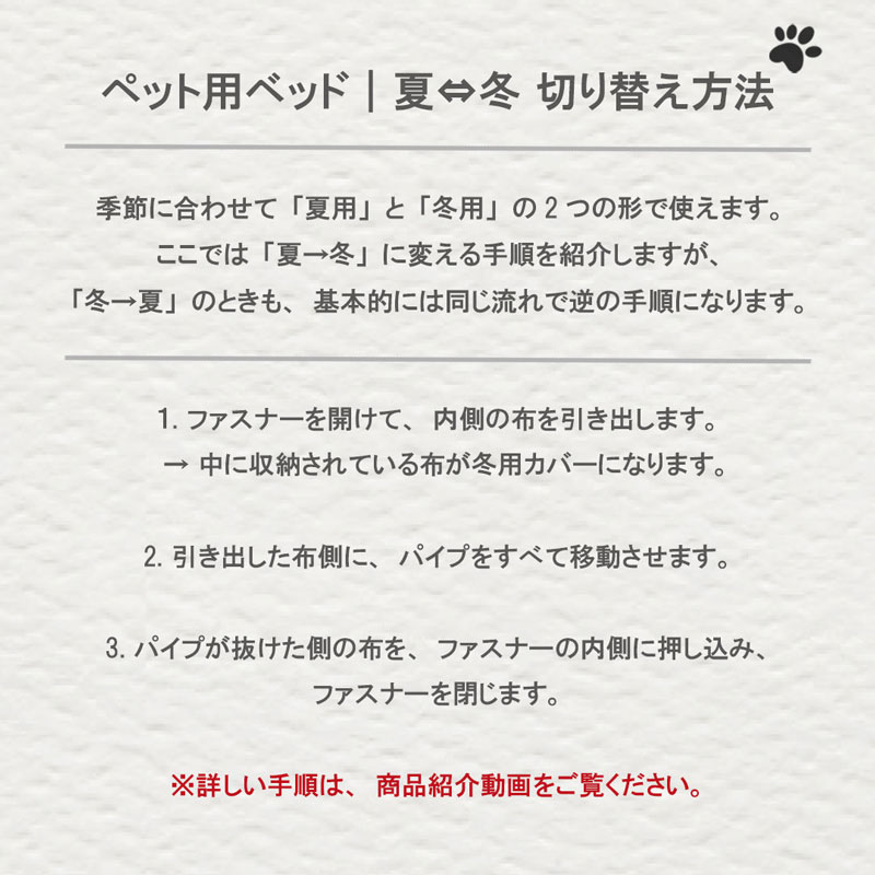 このベットは洗濯可能なのでいつでも清潔に保つことができ、1つあれば便利な使い勝手の良さも魅力のひとつです◎1年中ご愛用いただけます。