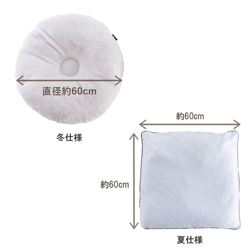 ライトグレーとライトベージュのかわいいデザインで、裏返すことによって、夏・冬用の2形状でご使用可能です。